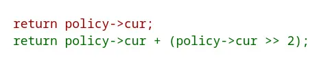 Kita harus menggunakan frekuensi yang lebih tinggi dari frekuensi saat ini agar memiliki peluang untuk menyetel OPP yang lebih tinggi ketika frekuensi saat ini digunakan sepenuhnya. Terapkan margin yang sama dan kembalikan frekuensi 25% lebih tinggi dari frekuensi saat ini untuk beralih ke OPP berikutnya sebelum kita menggunakan seluruh CPU di prosesor saat ini.”